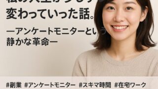 副業毎日のスキマ時間で、私の人生が少しずつ変わっていった話。—アンケートモニターという静かな革命— はじめに 〜誰にも言えなかった、あの不安〜「あと3万円あったら、少し楽になるのに…」そんなふうに思ったこと、ありませんか... 2025.10.14副業