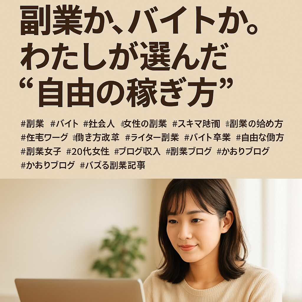 #副業 #バイト #社会人 #女性の副業 #スキマ時間 #副業の始め方 #在宅ワーク #働き方改革 #ライター副業 #バイト卒業 #自由な働き方 #副業女子 #20代女性 #ブログ収入 #副業ブログ #エモい副業 #かおりブログ #バズる副業記事