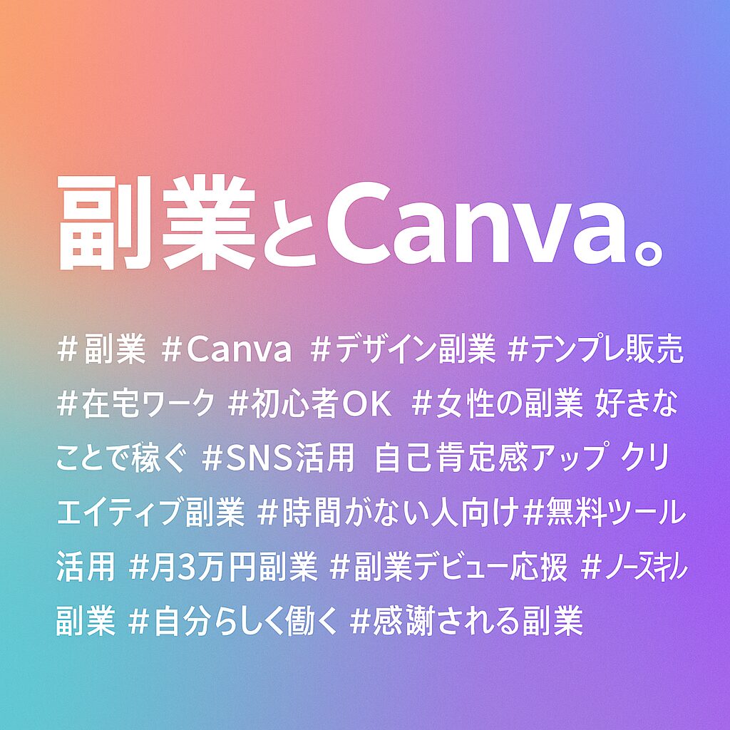 #副業 #Canva #デザイン副業 #テンプレ販売 #在宅ワーク #初心者OK #女性の副業 #好きなことで稼ぐ #SNS活用 #自己肯定感アップ #クリエイティブ副業 #時間がない人向け #無料ツール活用 #月3万円副業 #副業デビュー応援 #ノースキル副業 #自分らしく働く #感謝される副業