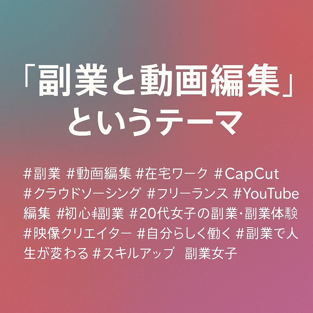 #副業 #動画編集 #在宅ワーク #CapCut #クラウドソーシング #フリーランス #YouTube編集 #初心者副業 #20代女子の副業 #副業体験談 #映像クリエイター #自分らしく働く #副業で人生が変わる #スキルアップ #副業女子